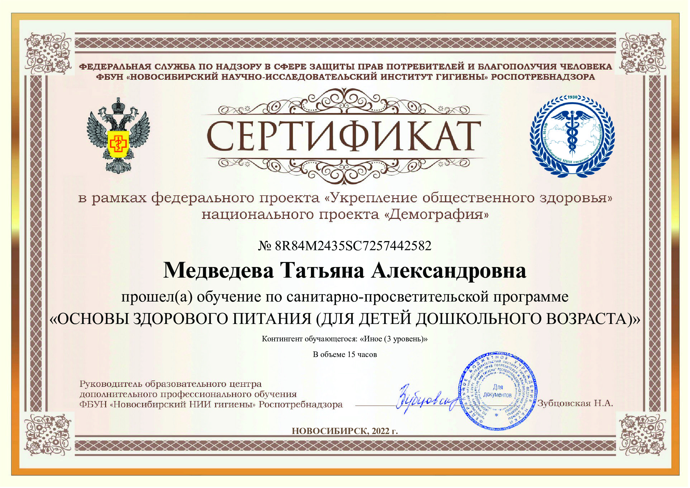 (Образовательный центр дополнительного профессионального обучения ФБУН"Новосибирский НИИ гигиены" Роспотребнадзора. 15часов. Форма обучения: ДИСТАНЦИОННО.).