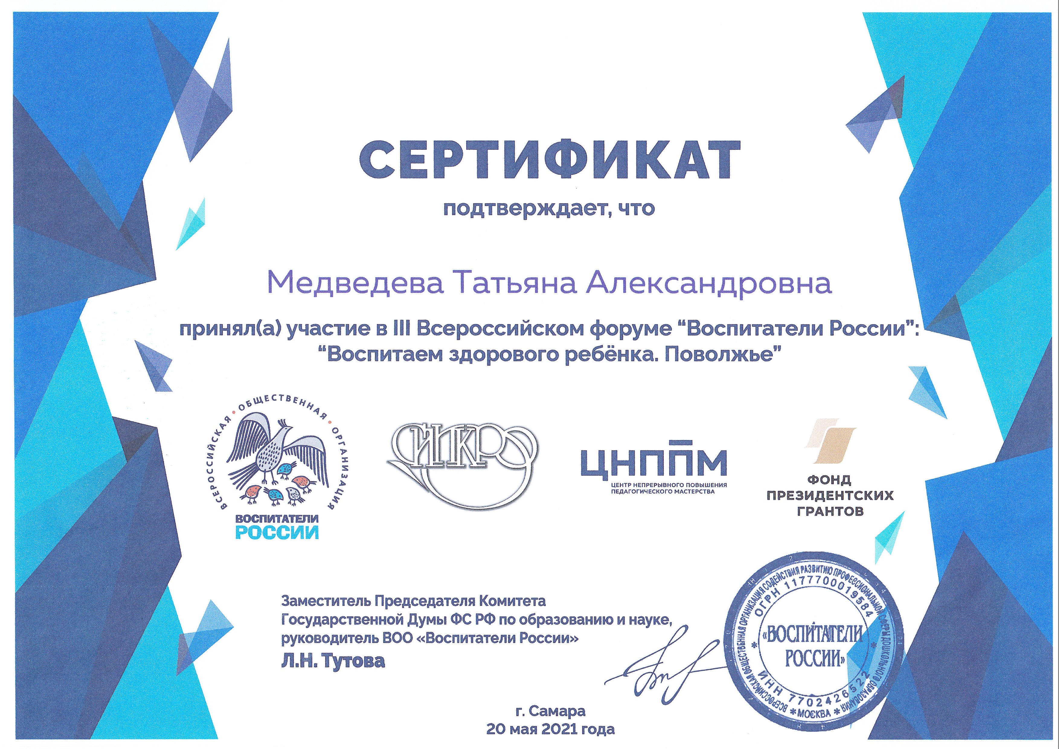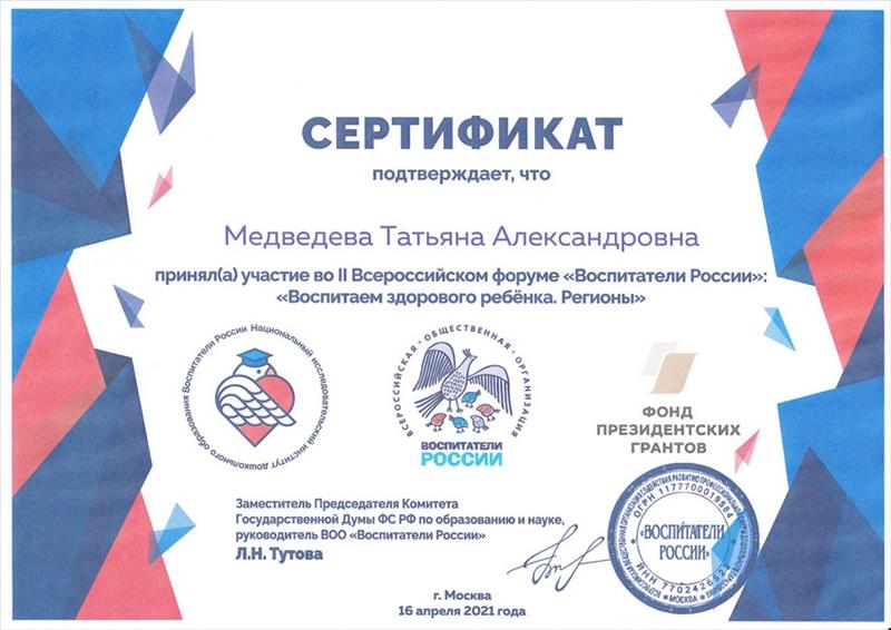 (III ВСЕРОССИЙСКИЙ ФОРУМ "ВОСПИТАТЕЛИ РОССИИ". 8часов. Форма обучения: ДИСТАНЦИОННО.).