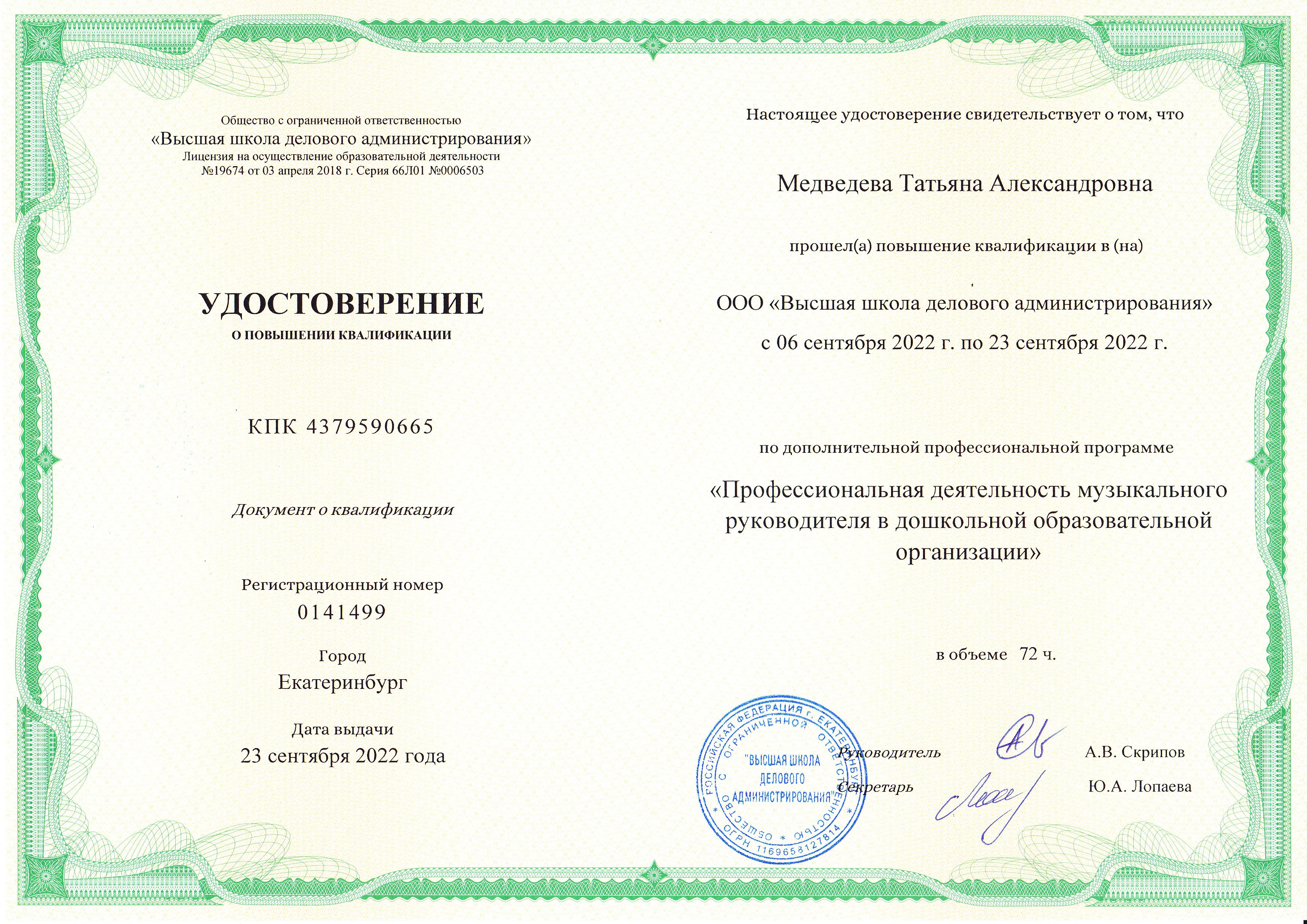 (ООО "Высшая школа делового администрирования". 72 ччасов. Форма обучения: дистанционно. Направленность: иное).